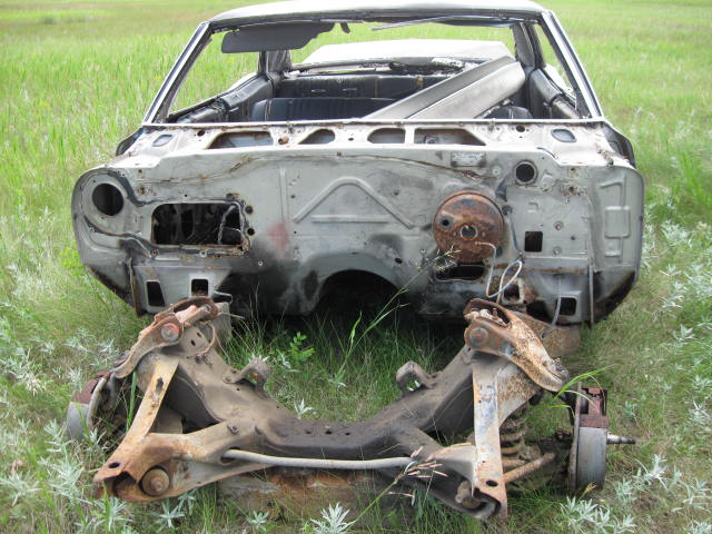 No motor or trans, has PB, all glass broke, lower quarters and fenders rusted. Frame rusted also, but doors are good.